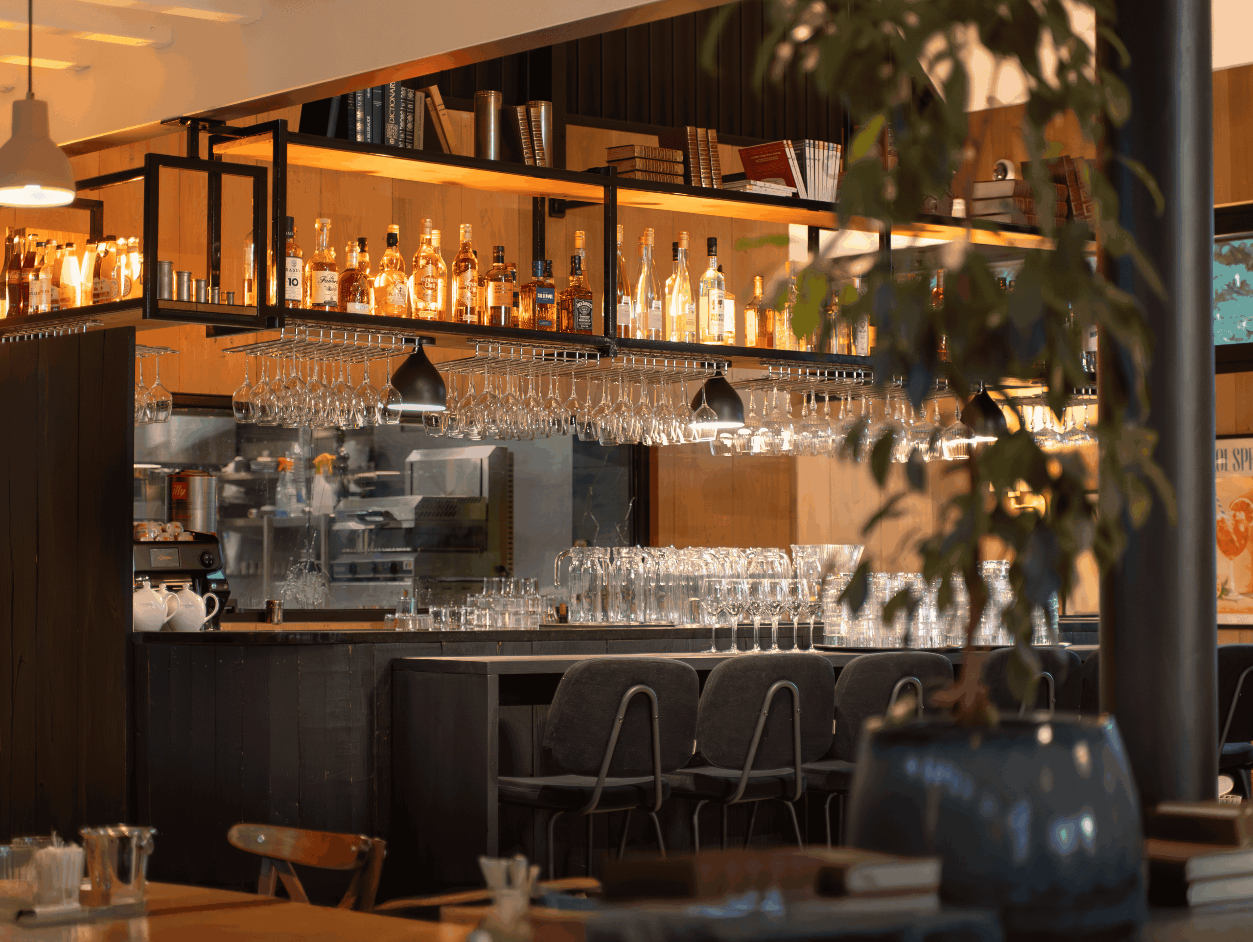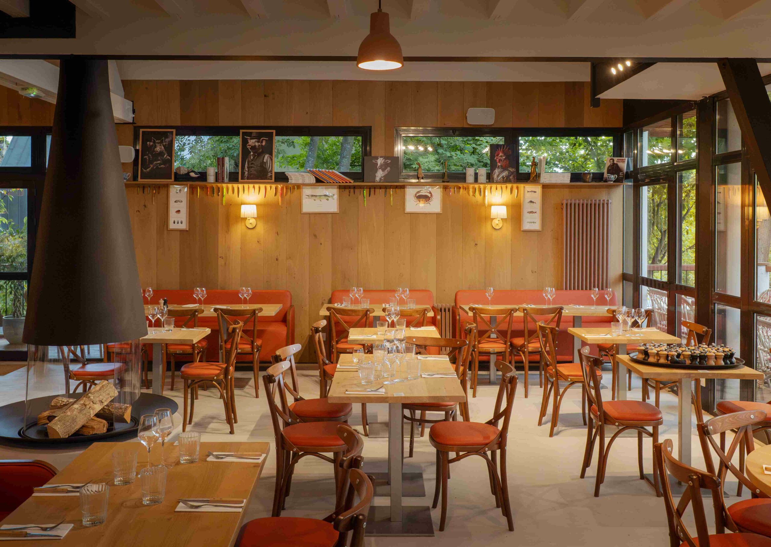 Un poêle central vient renforcer cette sensation d’intimité, tandis que le bar, entièrement redessiné, s’ouvre désormais sur la cuisine, permettant aux convives d’assister à la préparation des plats dans une ambiance vivante et ouverte.