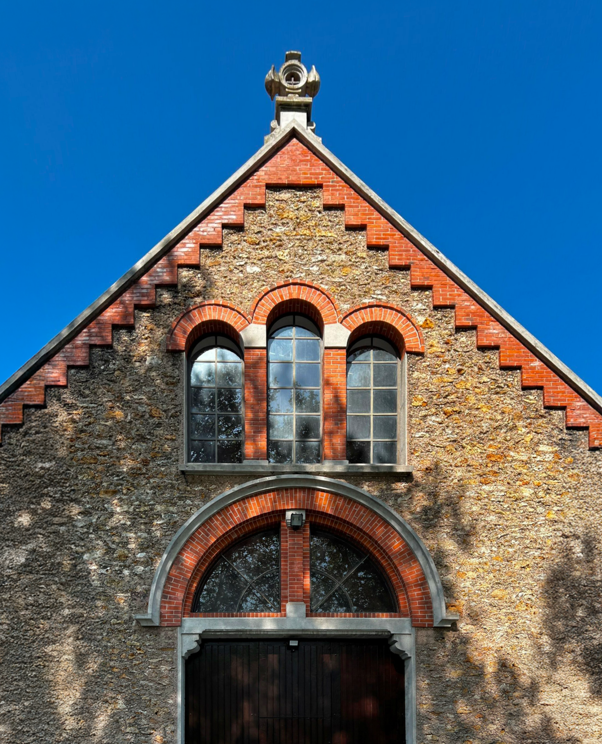 Entièrement sinistrée, la charpente a été reconstruite en bois massif, dans le respect du dessin initial. Les nouvelles fermes ont été traitées contre le feu et l’humidité, puis assemblées selon les principes de la charpente traditionnelle. La couverture a été repensée pour assurer une meilleure étanchéité et une isolation conforme aux exigences actuelles.